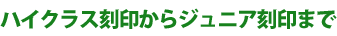 丸信工業社では、お客様の用途や予算に合わせて多種多様な刻印をご用意。打刻する位置を決めやすいよう文字に沿って周りが削られているダイヤライオン印のハイクラス刻印や、文字周りを削らない安価なジュニア刻印などがあり、いずれも即納可能です。刻印のことなら弊社にお任せください。